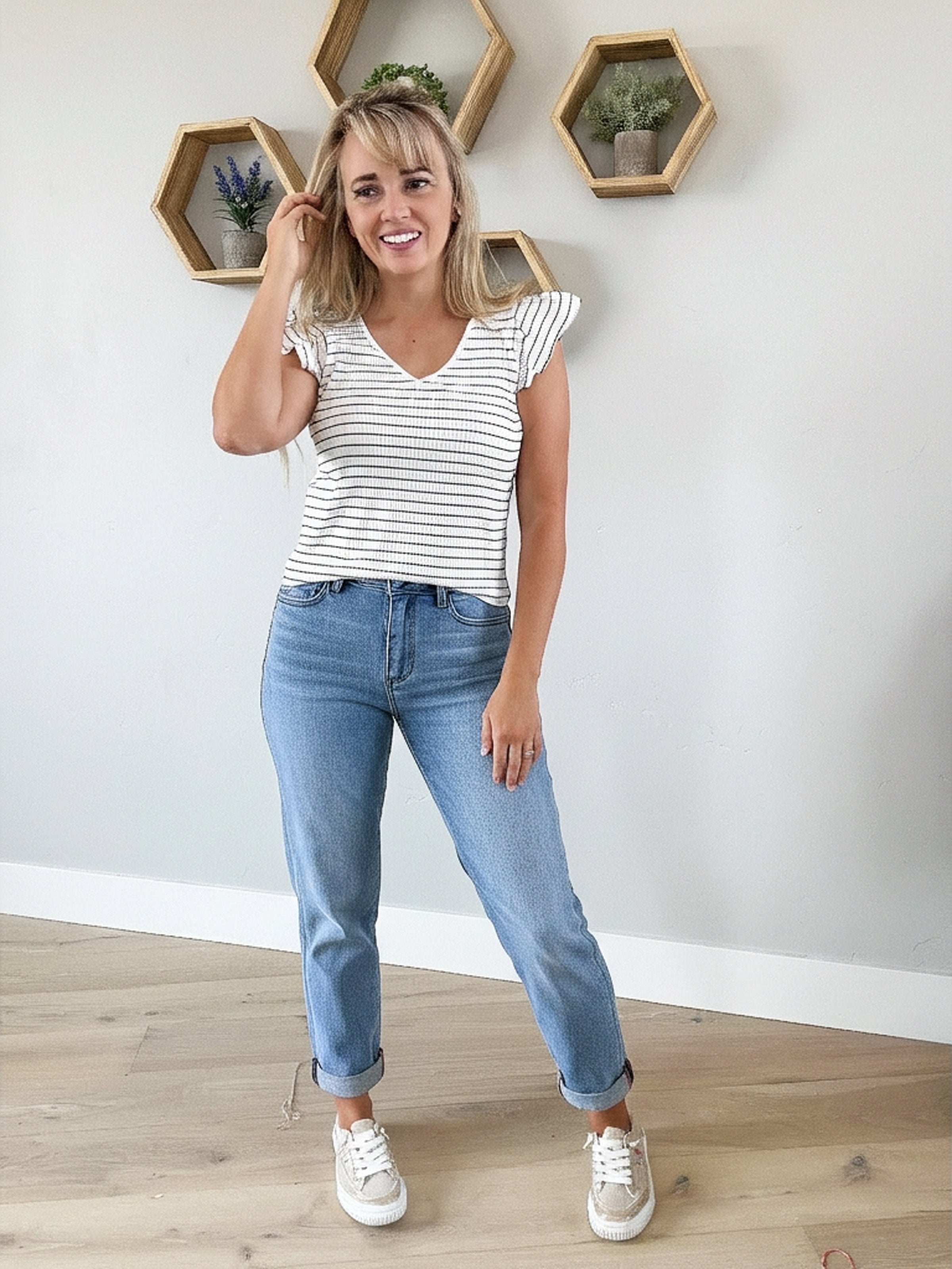 Meet your new go-to pair! The Judy Blue Mid Rise Boyfriend jeans from Judy Blue deliver effortless style with serious comfort. Featuring a relaxed boyfriend silhouette that's perfect for everything from coffee runs to weekend hangs, these jeans hug you in all the right places with a flattering mid-rise fit. The 4-way stretch fabric moves with you, while the rolled cuff adds a fun, casual vibe. Finished with a classic zipper fly for easy on-and-off. Versatile, comfy, and undeniably cool—your new favorite jeans are here.