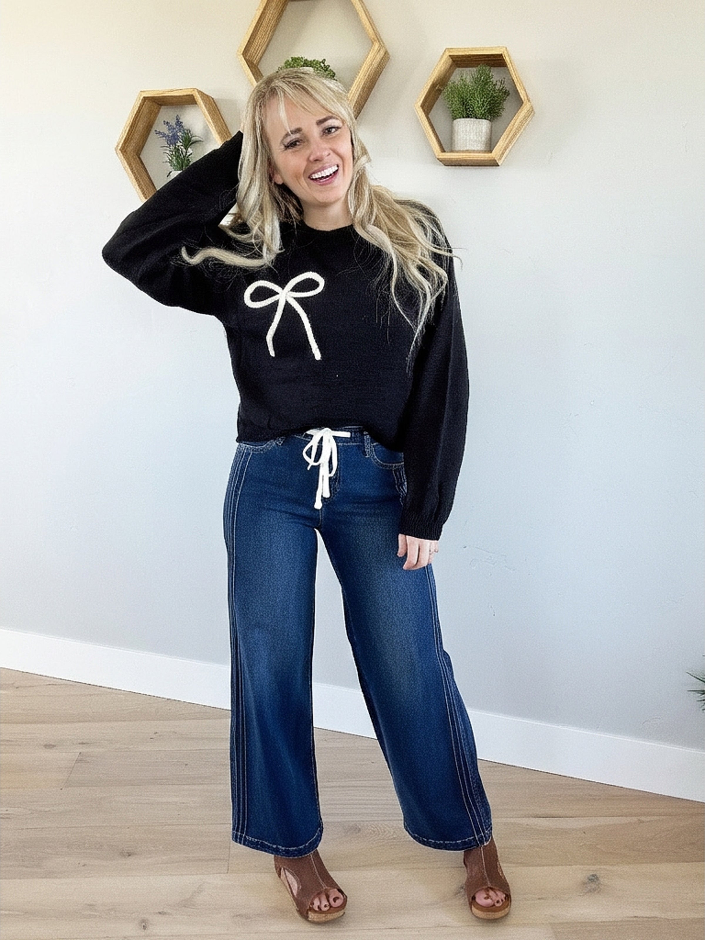 Rock a look that's equal parts chic and comfy with these Risen Mid Rise Side Pintuck Wide Leg Jeans. The side pintucks bring unexpected visual interest to your denim rotation, while the adjustable front drawstring lets you dial in the perfect fit. That mid-rise waistline? It's the Goldilocks of denim—flattering without being fussy. Wide legs give you room to move and pair beautifully with everything from sneakers to heels. Whether you're dressing up or keeping it casual, these jeans are your new go-to for effortless style that actually feels as good as it looks.