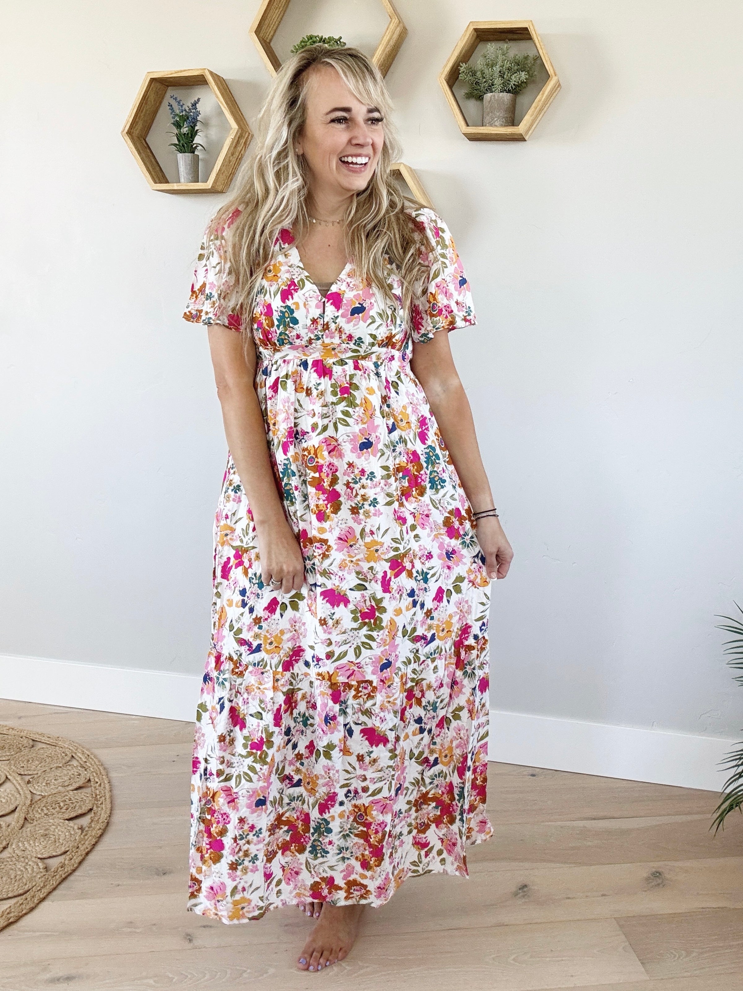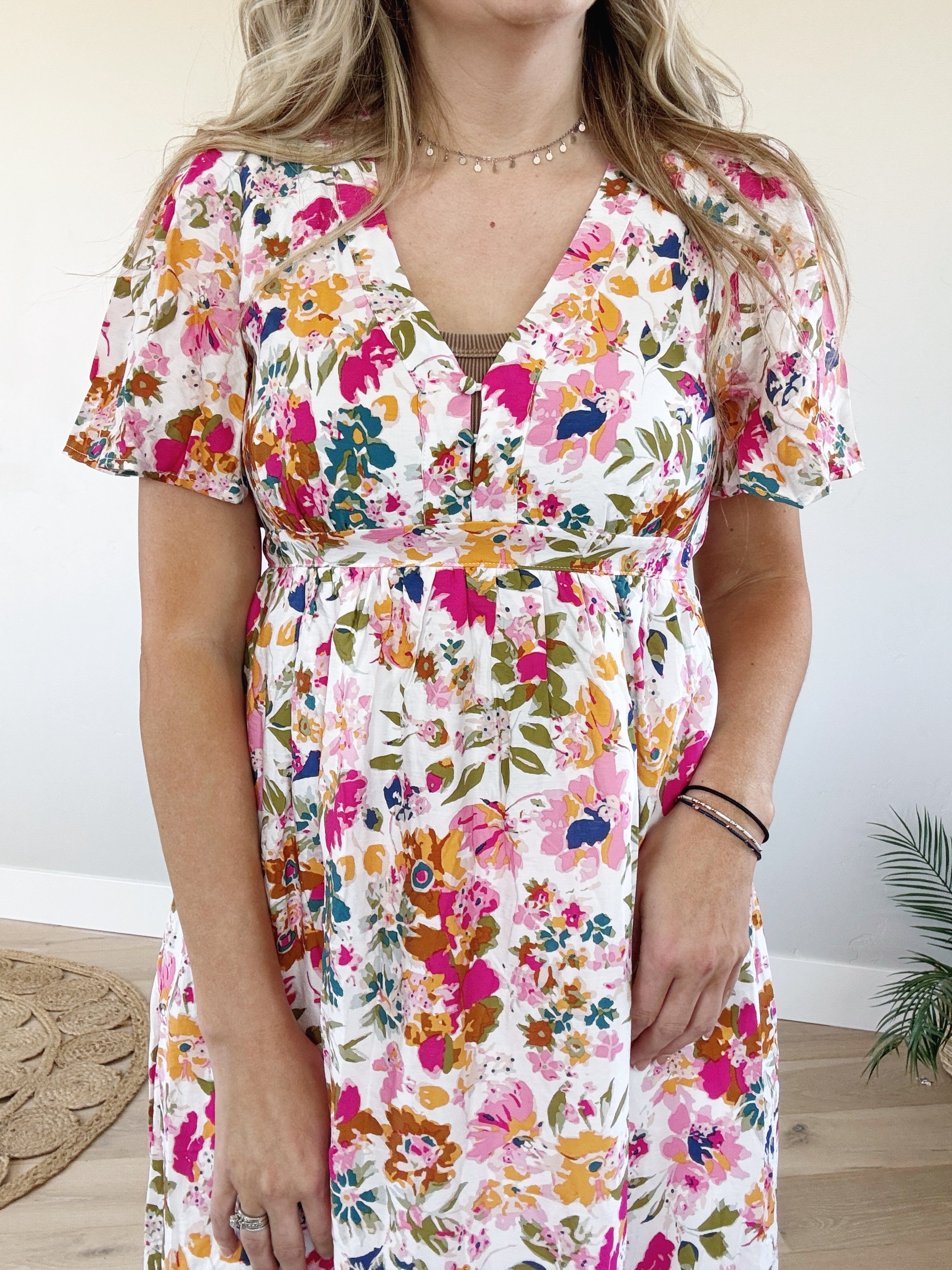 Experience style and convenience with our Moving On Floral Short Sleeve Dress! Featuring a beautiful floral design and functional pockets, this dress is perfect for any occasion. Embrace comfort and fashion with ease.