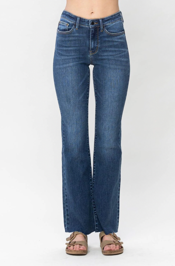 Judy Blue Mid Rise Raw Hem Bootcut Jeans