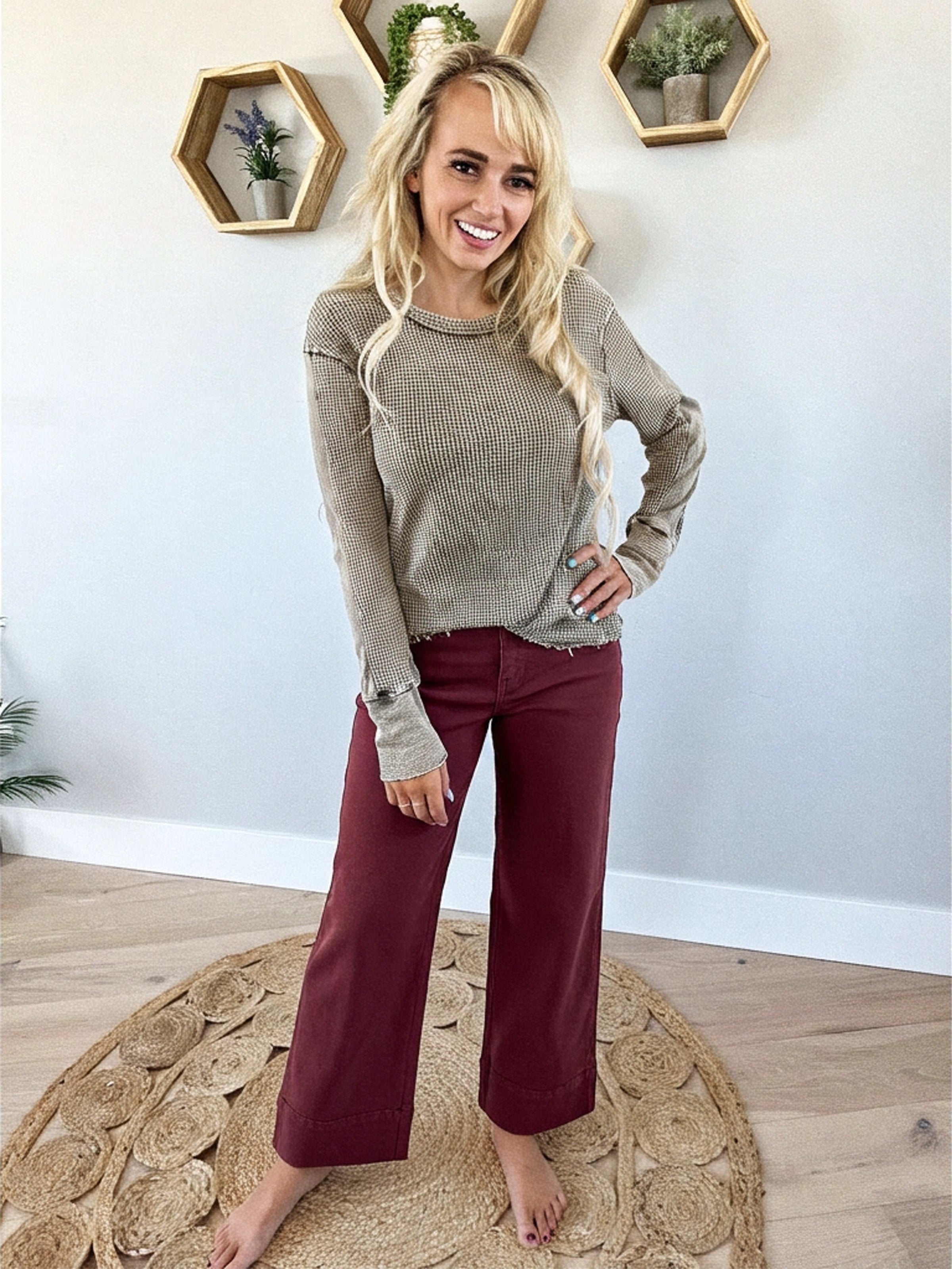 Risen Tummy Control High Rise Crop Wide Leg Pants