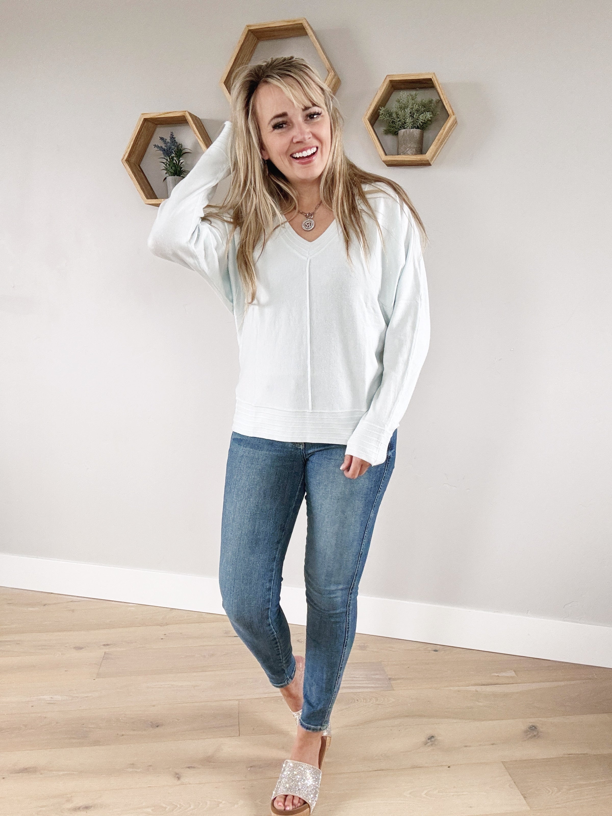Success V-Neck Pullover with Center Seam in Powder Blue