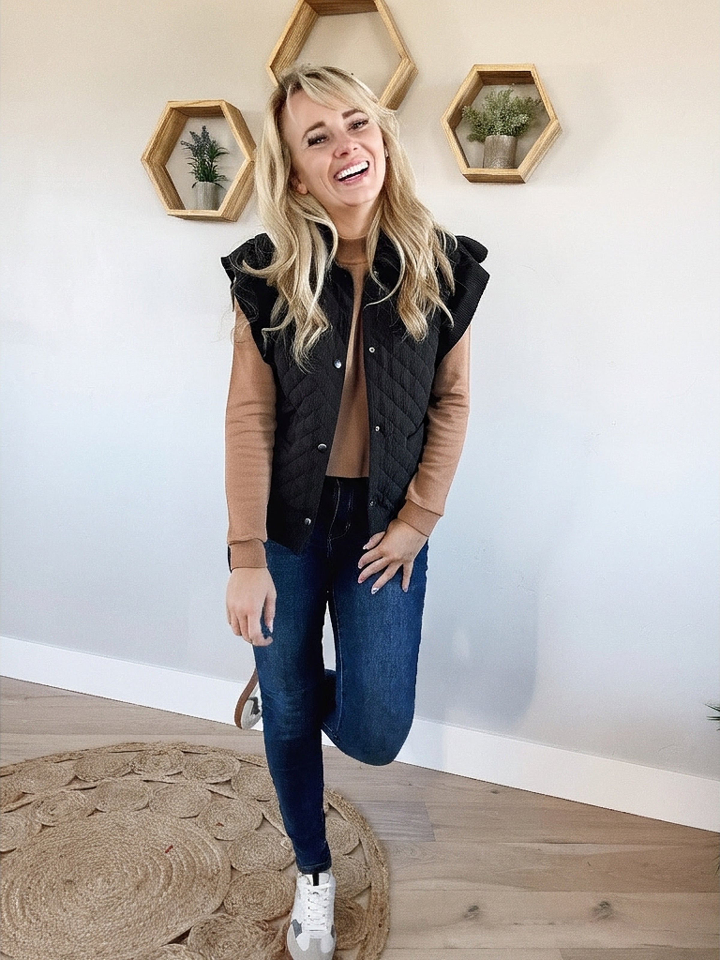 Very Glad To See You Quilted Ruffle Sleeve Vest